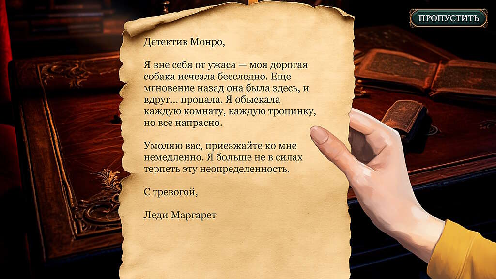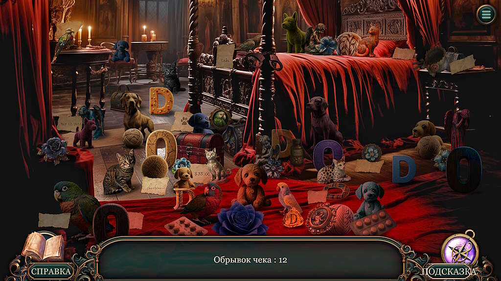 Прошлое малышки Лулу окутано тенями, а леди Маргарет, возможно, не говорит всей правды. Помогите детективу найти пропавшего питомца! Ищите улики в роскошных, но одновременно зловещих локациях: от залитых свечами залов и пыльных библиотек до заброшенных садов и склепов, окутанных тайной.